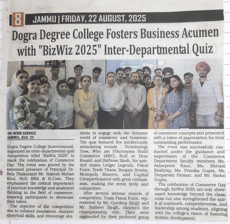 Dogra Degree College Fosters Business Acumen with "BizWiz 2025" Inter-Departmental Quiz