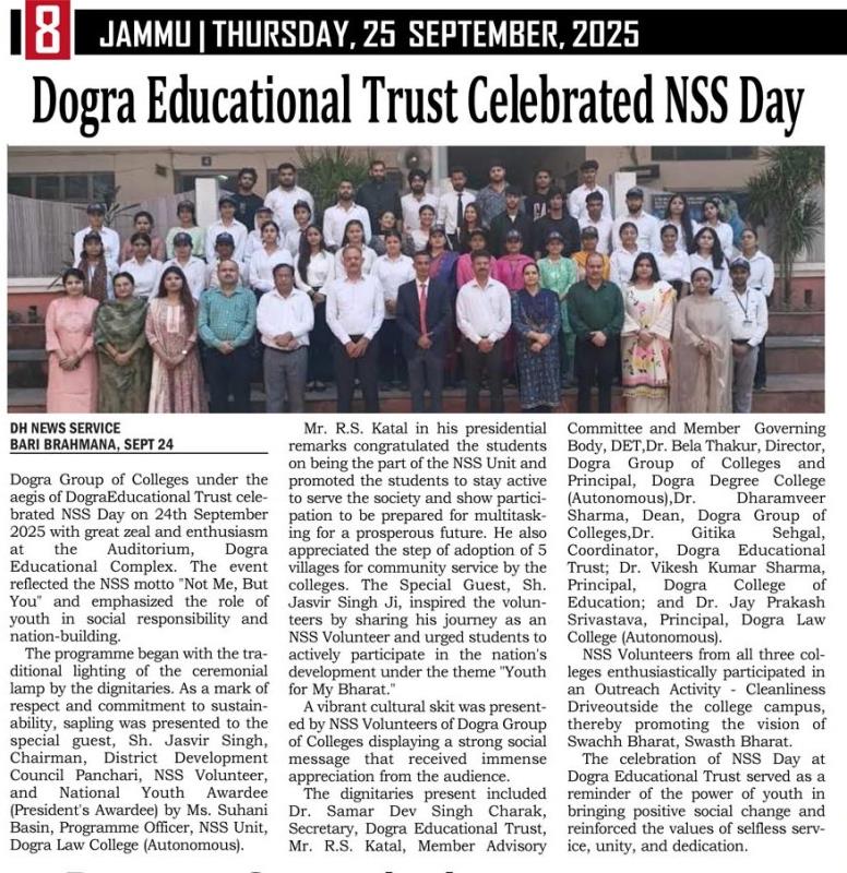 Dogra Educational Trust Celebrated NSS Day